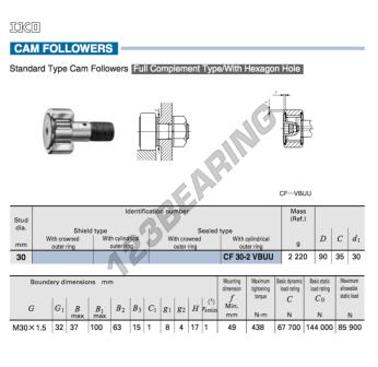 O Rolo De Leva Com Eixo, conhecido pela referência CFKR90-VUU-IKO, da marca IKO, tem um diâmetro interior de 30mm, um diâmetro exterior de 90mm e uma espessura de 35mm.