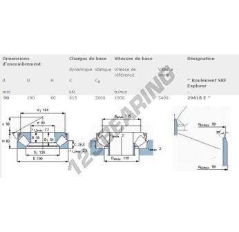 O Batente De Rolos, conhecido como 29418-E-SKF da marca SKF, tem um diâmetro interno de 90mm, um diâmetro externo de 190mm e uma espessura de 60mm.