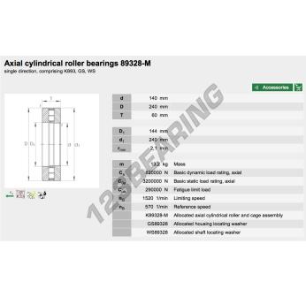 O Batente De Rolos, conhecido como 89328-M-INA da marca INA, tem um diâmetro interno de 140mm, um diâmetro externo de 240mm e uma espessura de 60mm.