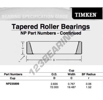 O Capa, conhecido pela referência NP235899-TIMKEN, da marca TIMKEN, tem um diâmetro exterior de 72mm.