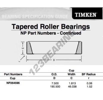 O Capa, conhecido pela referência NP264596-TIMKEN, da marca TIMKEN, tem um diâmetro exterior de 190.5mm.