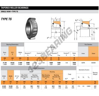 O Rolamento Cónico, conhecido pela referência 02476-02420A-TIMKEN da marca TIMKEN, tem um diâmetro interior de 31.75mm, um diâmetro exterior de 68mm e uma espessura de 21mm.