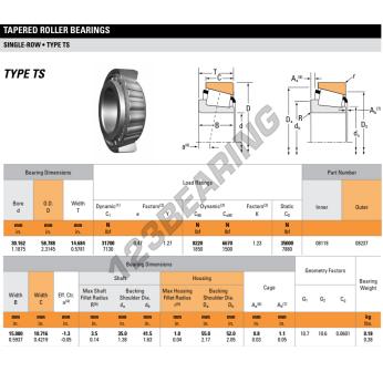 O Rolamento Cónico, conhecido pela referência 08118-08237-TIMKEN da marca TIMKEN, tem um diâmetro interior de 30.11mm, um diâmetro exterior de 58.79mm e uma espessura de 14.68mm.
