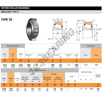 O Rolamento Cónico, conhecido pela referência 15119-15249-TIMKEN da marca TIMKEN, tem um diâmetro interior de 30.21mm, um diâmetro exterior de 63.5mm e uma espessura de 20.64mm.