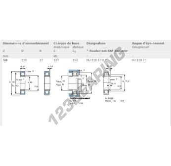O rolamento de rolos, conhecido pela referência NU310-ECM-SKF da marca SKF, tem um diâmetro interior de 50mm, um diâmetro exterior de 110mm e uma espessura de 27mm.