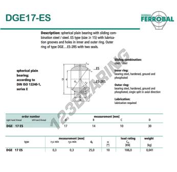 A Rótula Ge conhecida como DGE17-ES-DURBAL tem um diâmetro interno de 17mm, um diâmetro externo de 30mm e uma espessura de 10mm.