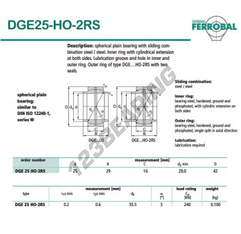 A Rótula Ge conhecida como DGE25-HO-2RS-DURBAL tem um diâmetro interno de 25mm, um diâmetro externo de 42mm e uma espessura de 16mm.