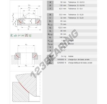 A Rótula Ge conhecida como GE50AW-INA tem um diâmetro interno de 50mm, um diâmetro externo de 130mm e uma espessura de 42.5mm.