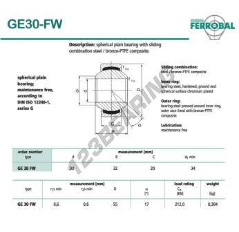 A Rotula Geew, conhecida pela referência DGE30-FW-DURBAL, da marca DURBAL tem um diâmetro interno de 30mm, um diâmetro externo de 55mm e uma espessura de 20mm.