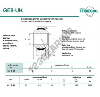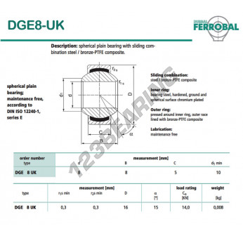 A Rotula Geew, conhecida pela referência DGE8-UK-DURBAL, da marca DURBAL tem um diâmetro interno de 8mm, um diâmetro externo de 16mm e uma espessura de 5mm.