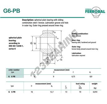 A Rotula Geew, conhecida pela referência G6-PB-DURBAL, da marca DURBAL tem um diâmetro interno de 6mm, um diâmetro externo de 16mm e uma espessura de 6.75mm.