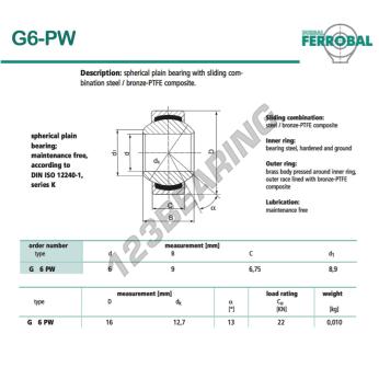 A Rotula Geew, conhecida pela referência G6-PW-DURBAL, da marca DURBAL tem um diâmetro interno de 6mm, um diâmetro externo de 16mm e uma espessura de 6.75mm.