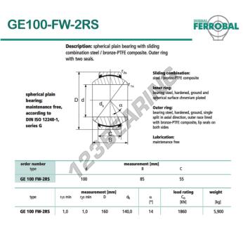 A Rotula Geew, conhecida pela referência GE100-FW-2RS-DURBAL, da marca DURBAL tem um diâmetro interno de 100mm, um diâmetro externo de 160mm e uma espessura de 55mm.