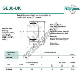 A Rotula Geew, conhecida pela referência GE30-UK-DURBAL, da marca DURBAL tem um diâmetro interno de 30mm, um diâmetro externo de 47mm e uma espessura de 18mm.