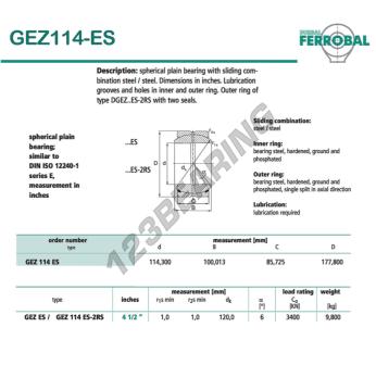 A Rotula Geew, conhecida pela referência GEZ114-ES-DURBAL, da marca DURBAL tem um diâmetro interno de 114.3mm, um diâmetro externo de 177.8mm e uma espessura de 85.725mm.
