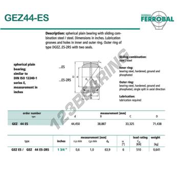 A Rotula Geew, conhecida pela referência GEZ44-ES-DURBAL, da marca DURBAL tem um diâmetro interno de 44.45mm, um diâmetro externo de 71.438mm e uma espessura de 33.325mm.