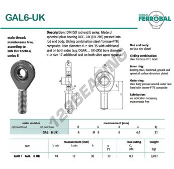 A Rotula Sa conhecida pela referência DGAL6-UK-DURBAL, da marca DURBAL tem uma rosca direita, um diâmetro interno de 6mm, um diâmetro externo de 21mm e uma espessura de 6mm.