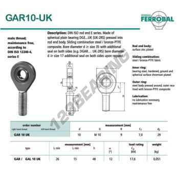 A Rotula Sa conhecida pela referência GAR10-UK-DURBAL, da marca DURBAL tem uma rosca direita, um diâmetro interno de 10mm, um diâmetro externo de 29mm e uma espessura de 9mm.