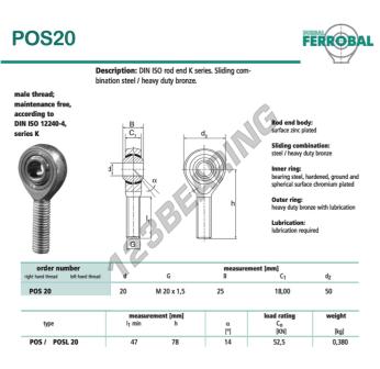 A Rotula Sa conhecida pela referência POS20-DURBAL, da marca DURBAL tem uma rosca direita, um diâmetro interno de 20mm, um diâmetro externo de 50mm e uma espessura de 25mm.