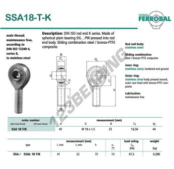 A Rotula Sa conhecida pela referência SSA18-T-K-DURBAL, da marca DURBAL tem uma rosca direita, um diâmetro interno de 18mm, um diâmetro externo de 44mm e uma espessura de 23mm.