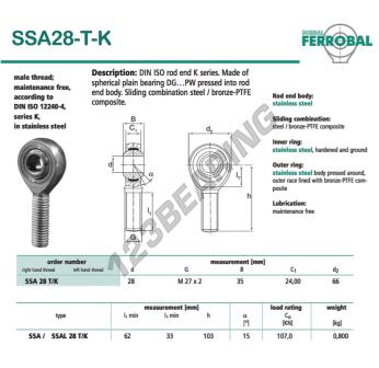 A Rotula Sa conhecida pela referência SSA28-T-K-DURBAL, da marca DURBAL tem uma rosca direita, um diâmetro interno de 28mm, um diâmetro externo de 66mm e uma espessura de 35mm.