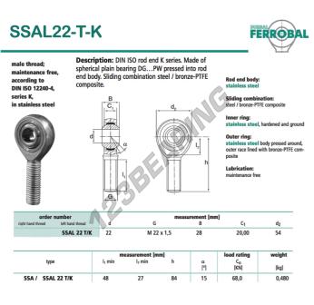 A Rotula Sa conhecida pela referência SSAL22-T-K-DURBAL, da marca DURBAL tem uma rosca direita, um diâmetro interno de 22mm, um diâmetro externo de 54mm e uma espessura de 28mm.