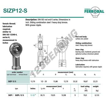 A Rótula Si conhecida pela referência SIZP12-S-DURBAL, da marca DURBAL tem um diâmetro interno de 12.7mm, um diâmetro externo de 33.32mm e uma espessura de 15.88mm.
