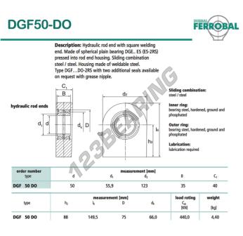 A Rótulas Tpn conhecida pela referência DGF50-DO-DURBAL, da marca DURBAL tem um diâmetro interno de 50mm, um diâmetro externo de 123mm e uma espessura de 40mm.