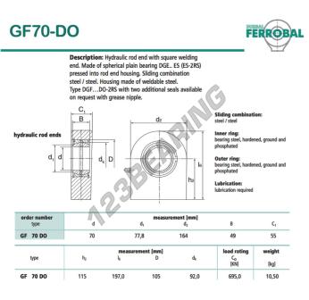A Rótulas Tpn conhecida pela referência DGF70-DO-DURBAL, da marca DURBAL tem um diâmetro interno de 70mm, um diâmetro externo de 164mm e uma espessura de 55mm.
